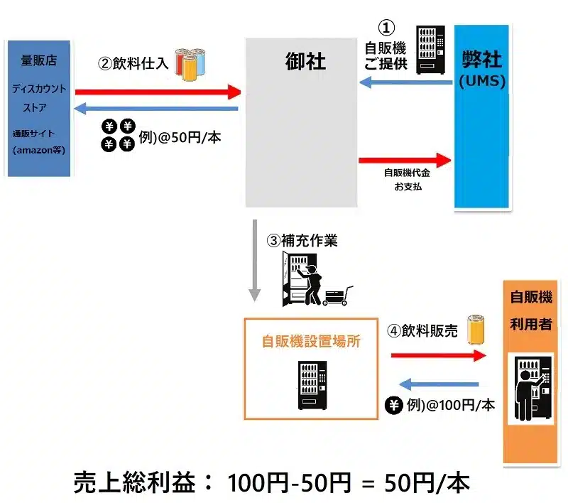 また、弊社では自動販売機をご購入いただいた方限定で各種飲料を卸売価格にてご提供しております。